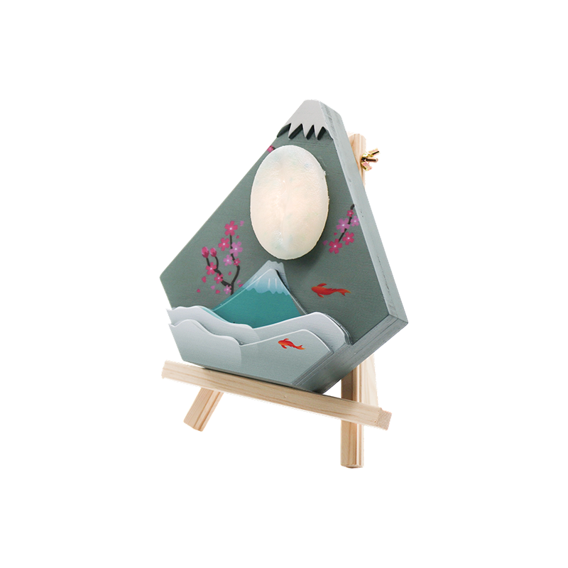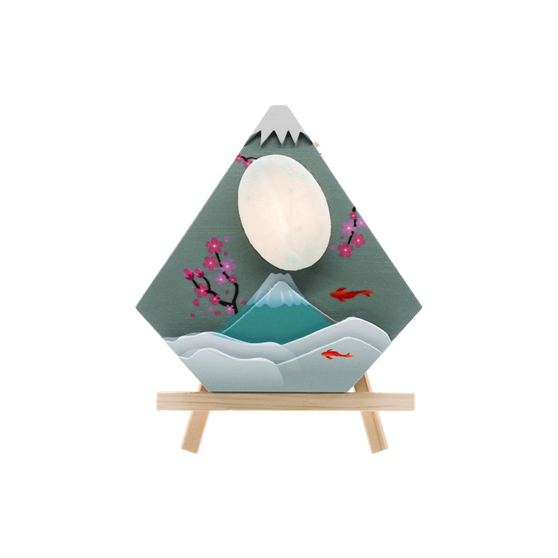 This Japanese wooden lamp, wrapped in silk and framed by natural wood, seems to breathe with life. The painted scene—Mount Fuji’s snowy peak above a koi-filled lake, strewn with cherry blossoms—feels alive under shifting light. Each stroke evokes a haiku, soft as moonlight.When illuminated, warm light filters through cherry branches, scattering petal shadows across walls, accompanied by the imagined chime of temple bells. Traditional Maki-e unites wood and art seamlessly. The lamp turns any space into a meditative retreat, where mountain haze lingers and fish glide past like whispers. A sanctuary for tired moments.