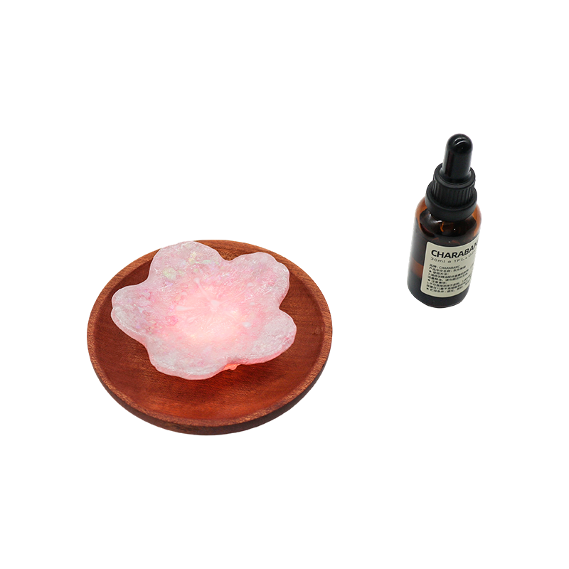 Inspired by the night-blown cherry blossoms of Kyoto's philosophical path, the hand-blown pink and white lamp gracefully blooms like a weeping cherry blossom. Warm light filters through the petals, casting a shimmering, "flower-bright" effect across the wall. The natural wooden tray, crafted from the remnants of century-old cedar, intentionally retains scars that echo the "incomplete beauty" of wabi-sabi aesthetics. Infused with organic essential oils, the light is refreshingly sweet, evoking the moistness of Lake Biwa's morning mist. When the lamp is lit, its fragrance and light intertwine to create an intimate ritual at the "Sakura Front"—an elegant addition to teatime by day, transforming into a "breathing lamp" that soothes urban loneliness at night. Each lighting of the lamp becomes a journey through the bustle of a "hanami tunnel," safeguarding the fleeting beauty of cherry blossoms amidst the mundane world of everyday life.