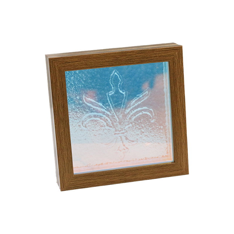 Fleur d'Éden captures the Scandinavian morning light into eternity. Within the square lamp, interwoven pink and purple petals unfold gracefully, as if caressed by an arctic breeze. The pale yellow center, like sunlight penetrating a cedar forest, dances between geometrically framed amber blocks. When the warm light comes on, colorful specks of light drift across the wall, creating a shimmering "hygge" scene. It's as if one can hear the harmonious melody of a log fire and snow-covered pine branches in a Finnish lakeside cabin. No need to travel far; simply sit quietly by this lamp and your heart will be transported to the "Garden of Light" from Andersen's fairy tales—a whisper of Nordic minimalist aesthetics and the poetic beauty of nature. This light offers the most gentle "fika" moment on a cold night, offering a peaceful, colorful dreamscape to every harried soul.